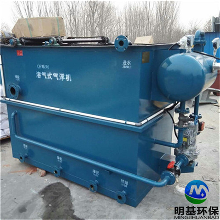 加压溶气气浮机利用高度分散的微小气泡作为载体粘附于废水中污染物上,使其浮力大于重力和上浮阻力,从而使污染物上浮至水面,形成泡沫,然后用刮渣设备自水面刮除泡沫,实现固液或液液分离的过程称为气浮法。气浮过程的必要条件是:在被处理的废水中,应分布大量细微气泡,并使被处理的污染质呈悬浮状态,且悬浮颗粒表面应呈疏水性,易于粘附于气泡上而上浮。加压溶气气浮法是指在加压条件下,使空气溶于水中,形成空气过饱和状态,然后减至常压,使空气析出,以微小气泡释放于水中,实现气浮。此法形成气泡小,约20~100μm,处理效果好,应用广泛。