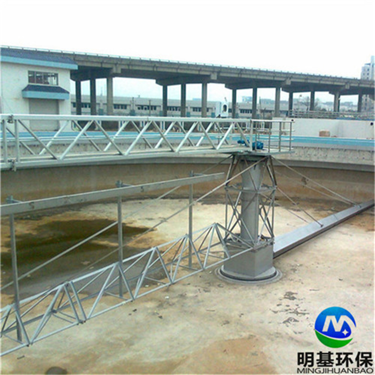 刮泥与集泥:通过减速驱动和悬挂式组件的传动,带动刮臂及刮泥板转动,刮板将池底的污泥从池周刮向中心集泥槽。